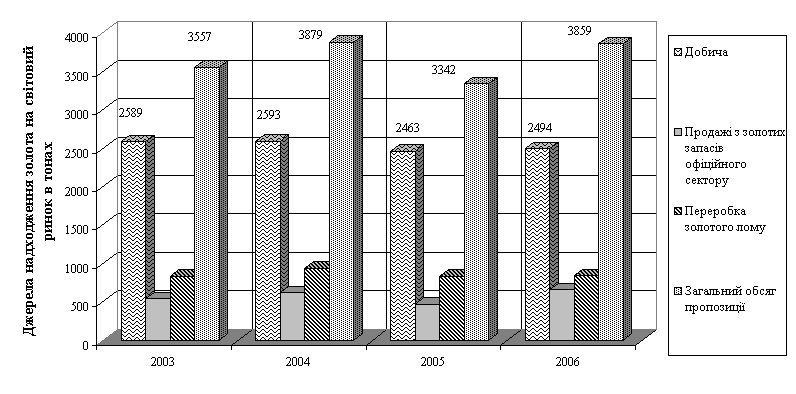 Рис.1.4.– Джерела пропозиції золота на світовому ринку у 2003 –2006 роках [52]
