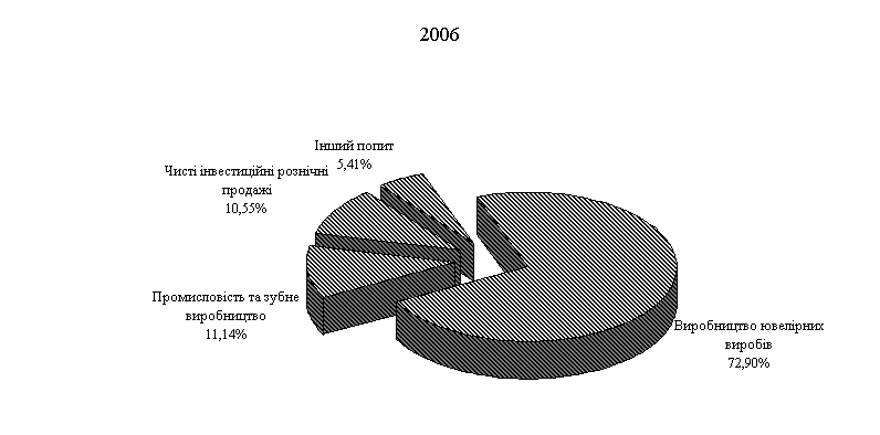 Рис.1.7. – Структура та обсяги попиту (продаж) золота на світовому ринку у 2003 –2006 роках [52]