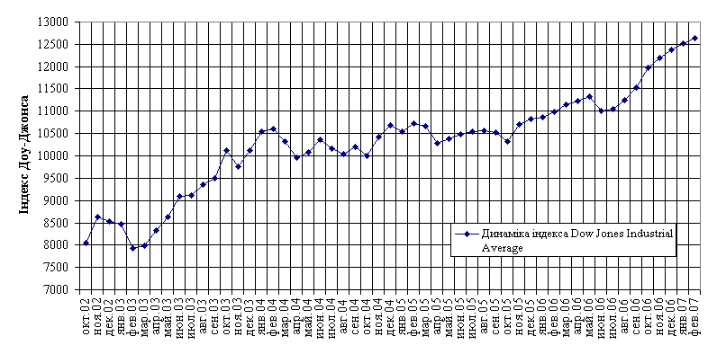 Рис.2.11. – Середньострокова динаміка індексу ДоуДжонса ринку цінних паперів у 2002 – 2007 роках [53]