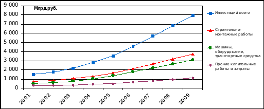 Показателем деятельности инжиниринговых компаний является объем инвестиций на рынке инжиниринговых услуг. На графике 3.1.1 и в таблице 3.1.1. представлены данные об объемах инвестиций в основной капитал. Рост объема инвестиций позволяет увеличивать объемы строительства и производства в будущем, кроме того, он способствует расширению рынка инжиниринговых услуг.