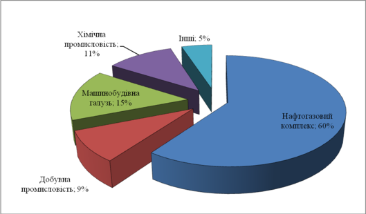 Рисунок 1.6 Структура споживання трубопрокату в Росії у 2007 р.