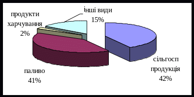 Із загальних обсягів укладених угод на торгівлю паливом припадало 6,5 млрд.грн. (41%), на операції з продажу сільськогосподарської продукції - 6,4 млрд.грн. (42%), продуктів харчування - 0,7 млрд.грн. (2%). Див. рис. 2.1