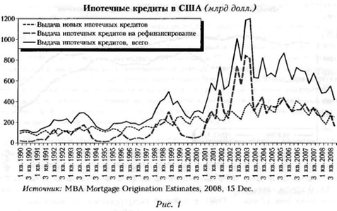 Мягкая денежно-кредитная политика, проводившаяся ФРС США с начала 2000-х годов, стимулировала выдачу банками кредитов. Среднегодовые темпы прироста банковского потребительского кредитования в 2003-2007 гг. были на уровне 5%, прирост потребительских кредитов в III квартале 2007 г. составил 7,2%. Объем выданных ипотечных кредитов возрос с 238 млрд долл. в I квартале 2000 г. до 1199 млрд долл. в III квартале 2003 г.