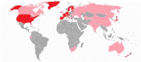 Рисунок 1- Карта распространения мирового финансового кризис в 2008 году: