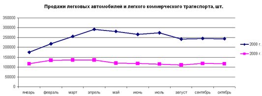 Рассмотрим влияние мирового кризиса 2008 года на состояние автомобильного рынка Республики Корея. На рисунке 1 показан объем продаж автомобилей на период 2008-2009 гг.