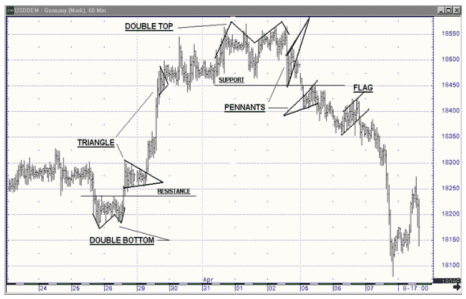 Различные комбинации рассмотренных линий образуют так называемые трендовые фигуры, которые традиционно используются аналитиками для прогнозирования будущего курса валют. Данные фигуры разделяют фигуры разворота и фигуры продолжения тренда.