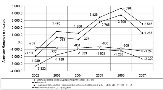 Узагальнюючим показником фінансової стійкості є надлишок (нестача) джерел засобів для формування запасів. Як джерела для формування запасів розглядаються: власний капітал і резерви; довгострокові зобов'язання; короткострокові кредити.