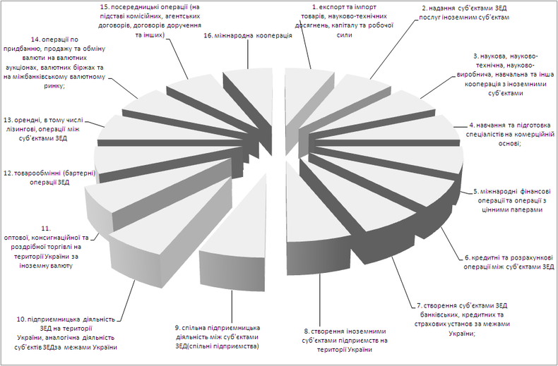 До головних видів зовнішньоекономічної діяльності належать 16 основних видів, наведених на рис.1.1.