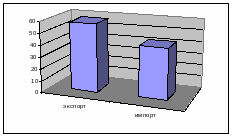 Из приведенной таблицы можно сделать следующие выводы: общая сумма экспортно-импортных операций ОАО «Кожевенный завод Гатово» за 2003г. составляет 6000 тыс. долл. США (Приложение В), из этой суммы на долю импортных операций приходится 42,5%, а на долю экспортных операций приходится 57,5% (рис. 2.1).