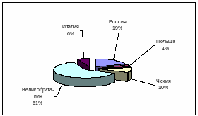 Самые крупные экспортные поставки ОАО «Кожевенный завод Гатово» осуществляют в Великобританию (Приложение Г), на долю которых приходится 61%. Второе место по объему экспортных операций занимает Россия (Приложение Д) – 19%. Потом идут Чехия, Италия, Польша. Импортные операции отражены на рис. 2.2.