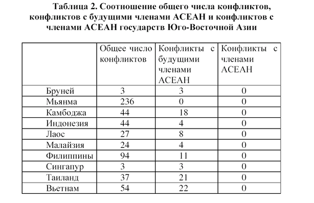 Исследователь Тимо Кивимяки15 для исследования причин возникновения АСЕАН использовал критерий количественного измерения конфликтов.