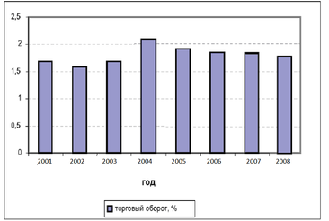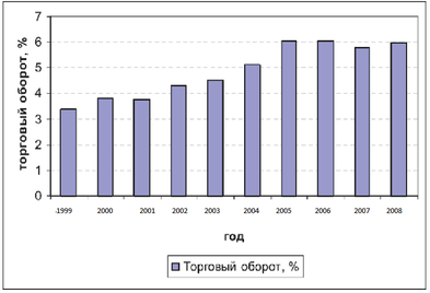 Рисунок 4 - Торговый оборот Китая с РФ, % от общего торгового оборота Китая