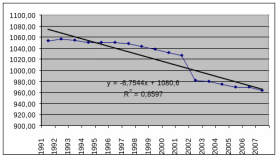 | 2006 | 969,1 | -0,10 | -84,00 | 99,99 | 92,02 | -0,01 | -7,98 | 9,69 | |||