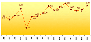 | 1990 | 1995 | 2000 | 2001 | 2002 | 2003 | 2004 | 2005 | 2006 | |