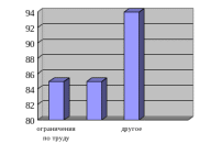 Среди опрашиваемых инвалидов на вопрос "Имеете ли Вы работу в настоящее время?" 75 человек из 264, т.е. 31% ответили положительно. В данную категорию включалась и постоянная работа и разовая, непостоянная. Как правило (62% от числа работающих), люди с ограниченными возможностями работают не по приобретенной специальности, а занимают должность и выполняют работу, которая в организации является свободной. Для всех них работа и получаемая ими заработная плата служит основанием для улучшения как собственного финансового положения, так и членов их семей. Однако следует оговориться, что оставшиеся 69% не имеют даже непостоянной работы, что служит показателем напряженности в среде инвалидов в сфере трудоустройства и занятости.