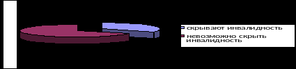 Инвалиды предпочитают скрывать, при возможности, инвалидность из-за опасений получить отказ, что подтверждает игнорирование общества инвалидов как успешных работников.