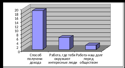На вопрос "Что для Вас значит работа и какое место в Вашей жизни она занимает (или будет занимать, должна занимать)?" 162 из опрашиваемых (63%) ответили, что главное в работе - это источник дохода, 62 человека (28%) – находят в трудовой деятельности способ самовыражения, 40 инвалидов (15%) благодаря работе рассчитывают повысить свой социальный статус, самооценку. (Диаграмма 6).