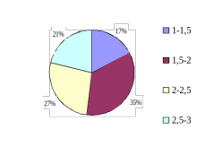 1) до 1 2) от 1 до 1,5 3) от 1,5 до 2 4) от 2 до 2,5 5) от 2,5 до 3
