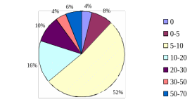 1) 0 2) от 0-5 3) от 5-10 4)от 10-20 5) от 20-30 6) от 30-50 7) от 50-70 8) от 70 - 90