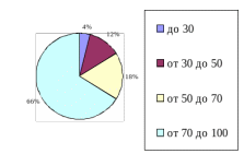 1) до 30 1) от 30 до 50 2) от 50 до 70 3) от 70 до 100