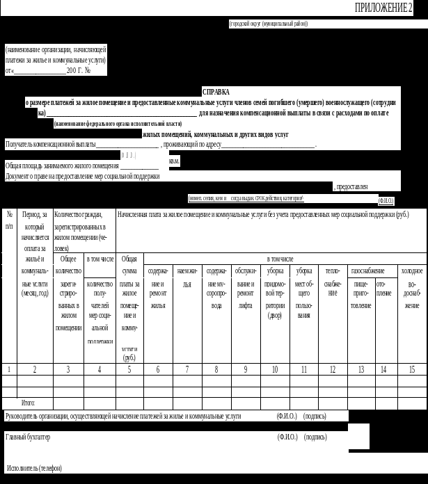 (в соответствии с постановлением Правительства РФ от 2 августа 2005г. №475 «О предоставлении членам семей погибших (умерших) военнослужащих и сотрудников некоторых федеральных органов исполнительной власти компенсационных выплат в связи с расходами по оплате жилых помещений, коммунальных и других видов услуг»)