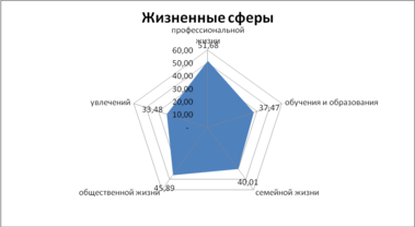 Рассмотрим полученные результаты с точки зрения разбивки на жизненные сферы. Результаты исследования показывают средние значения показателей для сфер: