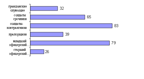 В опросе приняли участие офицеры, прапорщики, солдаты, проходящие службу по контракту, солдаты срочной службы, гражданские служащие воинской части 20117 (рисунок 2.4).