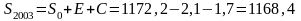 | 2003 | 1168,4 | 3 | 9 | 3505,2 | 1171,4 |