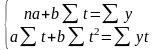 Параметри трендових рівнянь визначають методом найменших квадратів. Згідно з умовою мінімізації суми квадратів відхилень фактичних рівнів ряду yt від теоретичних Yt параметри визначаються розв’язуванням системи нормальних рівнянь. Для лінійної функції вона записується так: