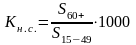 До цієї системи показників належить коефіцієнт старіння населення, що характеризує частку осіб, які досягли і перетнули перший поріг старості (60 років):