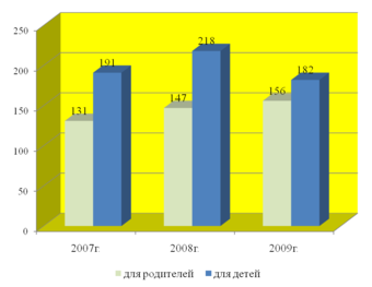 | Родителей (чел.) | 502 | 459 | 510 |