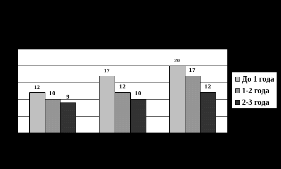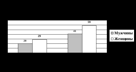 | Моложе 20 лет 20-29 30-39 40-49 старше 50 итого | - 10 6 15 0 31 | - 32,2 19,4 48,4 - 100 | - 14 10 15 - 39 | - 35,9 25,6 38,5 - 100 | - 20 17 12 - 49 | - 41 35 24 - 100 | ||
