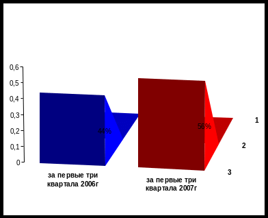 Рис. 3 количество обратившихся за назначением трудовых пенсий за первые три квартала 2006 и 2007 годов