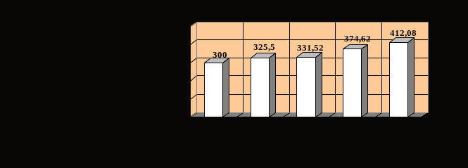 исунок 1 - Размеры единовременного пособия женщинам, вставшим на учет в медицинских учреждениях в ранние сроки беременности, в 2002-2010 гг., руб.