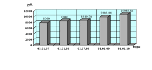 Рисунок 2 - Размеры единовременного пособия при рождении ребенка в 2007-2010 гг., руб.