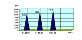Рисунок 4 – Размеры единовременного пособия беременной жене военнослужащего, проходящего военную службу по призыву, в 2008-2010 гг., руб.