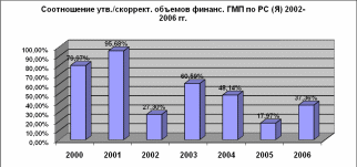 Данные диаграммы свидетельствуют о довольно поверхностном подходе к вопросу финансирования мероприятий молодежной политики со стороны республиканской власти. Практика показывает, что хотя Правительством и Государственным Собранием республики вначале и принимались объемные параметры финансирования из средств республиканского бюджета, но впоследствии укоренилась практика сокращения расходов на молодежную политику. Как видно из диаграммы 2, в некоторые годы финансирование данного раздела государственного бюджета республики сокращалось до 18% от утвержденных ранее этими же институтами государственной власти объемов.