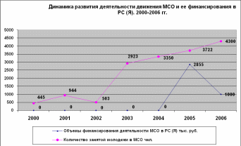 Интересно, что динамику поступательного развития движения стройотрядов нельзя напрямую связывать с финансированием из средств республиканского бюджета. И хотя на этапе возрождения движения в трагические дни наводнения ее деятельность финансировалась через другие статьи бюджета республики, то в дальнейшем движение расширяется вопреки сокращению расходов на нее. Здесь свою роль играют объективные и субъективные причины, в том числе и идеологического, административного характера. Большую роль конечно играют крупные предприятия и организации республики, хозяйствующие субъектов всех форм собственности, которые предоставляют стройотрядавцам подрядные работы. Большой импульс развитию движения придал призыв Президента РФ В. Путина, одним из последствий которого можно назвать тот факт, что деятельность студенческих отрядов находится под пристальным вниманием Президента и Правительства республики.