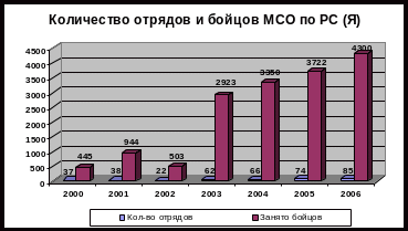 В начале 2004 года по инициативе студентов и молодежи было учреждено Общественное движение «Молодежные студенческие отряды» - молодые люди поверили в свои силы, в возможность приобретения умения и навыков хозяйственной деятельности и поправить материальное положение во время каникул. И даже после того, как при корректировке государственного бюджета республики в 2005 году на финансирование подпрограммы по развитию деятельности молодежных студенческих отрядов не было выделено ни одного рубля, динамика поступательного развития их деятельности не претерпело изменений. Так, в 2005 году работало 74 студенческих отрядов, в которых было задействовано более 3,7 тысяч юношей и девушек, а объемы выполненных работ составили более 83 млн. рублей. В 2006 году охват движения еще более увеличился и составил уже 85 отрядов с 4300 бойцами.
