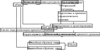 Изучение социального управления в местных органах власти, в частности администрации города Перми показывает, что в основе построения административной пирамиды в этом органе местного самоуправления находится принцип демократического централизма. В результате власть концентрируется наверху пирамиды, а проблемы накапливаются в ее основании. Очевидно, чем меньше полномочий у тех, кто стоит ближе всего к проблеме, тем больше эта проблема остается нерешенной. Вместо того, чтобы направлять проблемы снизу вверх, зачастую вводить их в масштаб муниципального строительства, надо передать полномочия вниз тем, кто хорошо знает обстановку на местах и способен самостоятельно принимать решения. Модель системы местного самоуправления по сей день является целеориентированной моделью, в которой органы власти на этапе формирования своей деятельности ориентируются на некие программные цели или указания органов государственной власти и вырабатывают решения на основе оценки имеющихся сил и средств для их осуществления без учета отношения общественности к осуществлению того или иного проекта, ошибочно полагая, что власть лучше знает в чем нуждается народ и каковы его подлинные интересы (см. рис. 1).