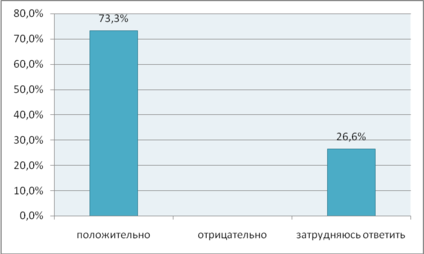 В ответ на вопрос, «Как на Ваш взгляд Вы оцениваете социально-медицинскую помощь» 73,3 % респондентов ответили положительно; 26,6 % опрашиваемых затрудняются ответить на этот вопрос. Отсюда видно, что качество социально-медицинского обслуживания находится на высоком уровне. Что свидетельствует о том, что в доме-интернате работают достаточно опытные сотрудники медицинского персонала.