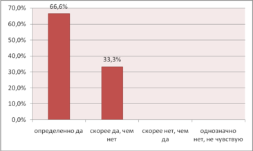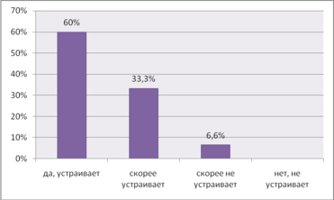 66,6% респондентов ответили на этот вопрос определенно да, 33,3% скорее да, чем нет. Таким образом, можно сказать, что условия проживания в доме-интернате пожилых в целом устраивают, чувствуют они себя достаточно комфортно, защищено.