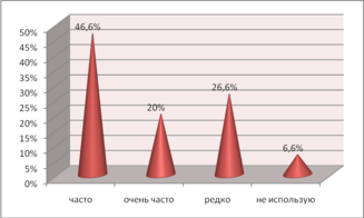 Из данного вопроса 46,6% респондентов в большинстве отвечают часто. И в тоже время 26,6% респондентов отвечают, что редко используют новые методы и приемы в работе с клиентами. И всего лишь 6,6% опршенных не использует в работе с клиентами новых методов и технологий. Отсюда видно, что социальные работники стараются часто использовать в своей работе новые методы, не действует по шаблону, пытаются заинтересовать обслуживаемых лиц, используя различные методы и технологии в работе.