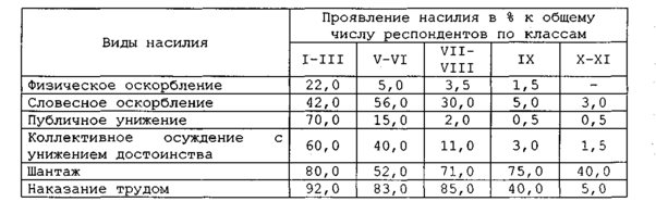 Исследования показывают, что в школах также широко практикуется насилие над детьми. Анализ сущности внутришкольных отношений позволил выделить несколько его видов: