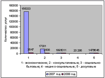 По сравнению с 2007 годом в связи с изменениями в оказании адресной помощи уменьшилось количество оказываемых услуг.