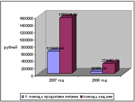 Натуральная помощь вещами в 2008 году была оказана на 82% меньше показателей 2007 года.