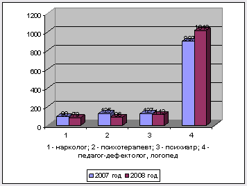 В течение 2008 года врачами и педагогом–дефектологом, логопедом принято 1294 гражданина, что по сравнению с 2007 годом увеличилось на 4,4%.
