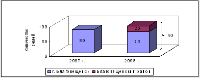 На 31.12.2008 года в отделении реабилитации несовершеннолетних с ограниченными умственными и физическими возможностями на учете состоит 452 семьи, из них 7 семей проживающие в Благовещенском районе, по сравнению с 2007 годом число семей уменьшилось на 25%, что связано с улучшением социально–экономического положения, состояния здоровья несовершеннолетних, выезд за территории Благовещенского района.