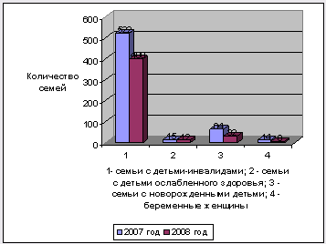Для постановки на учет в отделение реабилитации несовершеннолетних с ограниченными умственными и физическими возможностями обратилось 4 семьи, имеющих детей с ограниченными возможностями здоровья, что в два раза меньше по сравнению с 2007 г.