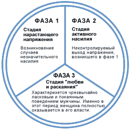 Насилие обычно стандартно. Цикл насилия имеет три фазы: